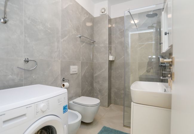 The apartment features a cosy bedroom with a double bed and an additional double sofa bed, comfortably accommodating up to 4 guests. A well-equipped bathroom with a shower ensures convenience and comfort. The bright and airy living space is complemented by modern amenities including a smart TV, high-speed WiFi, and air conditioning to keep you comfortable in all seasons.