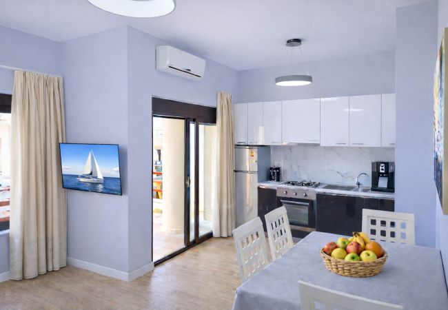Step inside to find a comfortable and bright space. The apartment features an open, airy living room with modern furnishings. Cook delicious meals in the fully-equipped kitchen and enjoy them on the terrace, taking in breathtaking sea views and unforgettable sunsets. After a day full of sun and adventure, retreat to the cozy bedrooms for a peaceful night’s sleep.