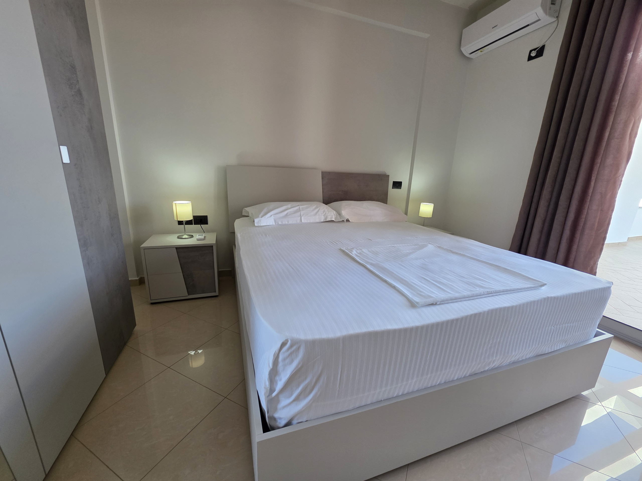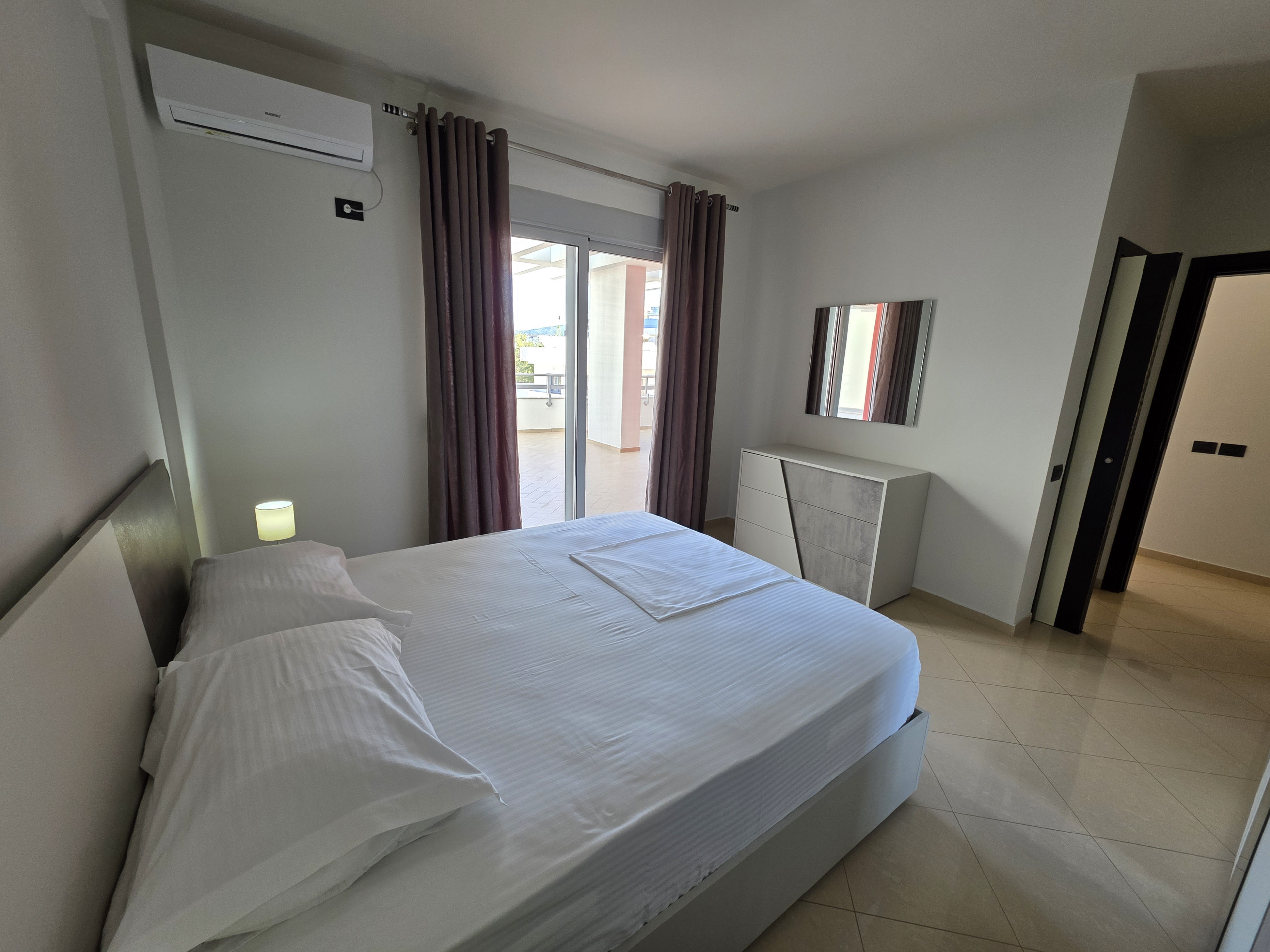 The apartment in Vlorë has 2 bedrooms and has capacity for 4 people. The property is located right next to the beach. It has views of waterfront. The property is located 10 m from The he restaurant, 145 m from Tirana International Airport international airport, 1 km from Jonufra rock beach, 45 km from Llogara National Park nature reserve. The housNew Beach sand beach, 50 m from the supermarket, 50 m from the from te is situated in a residential neighborhood next to the sea.The accommodation is equipped with the following items: , iron, hair dryer, balcony, air-conditioned, mosquito net/nets in the bedroom, TV.In the electric open plan kitchen, refrigerator, oven, freezer,, kitchen utensils, coffee machine, toaster and kettle are provided.