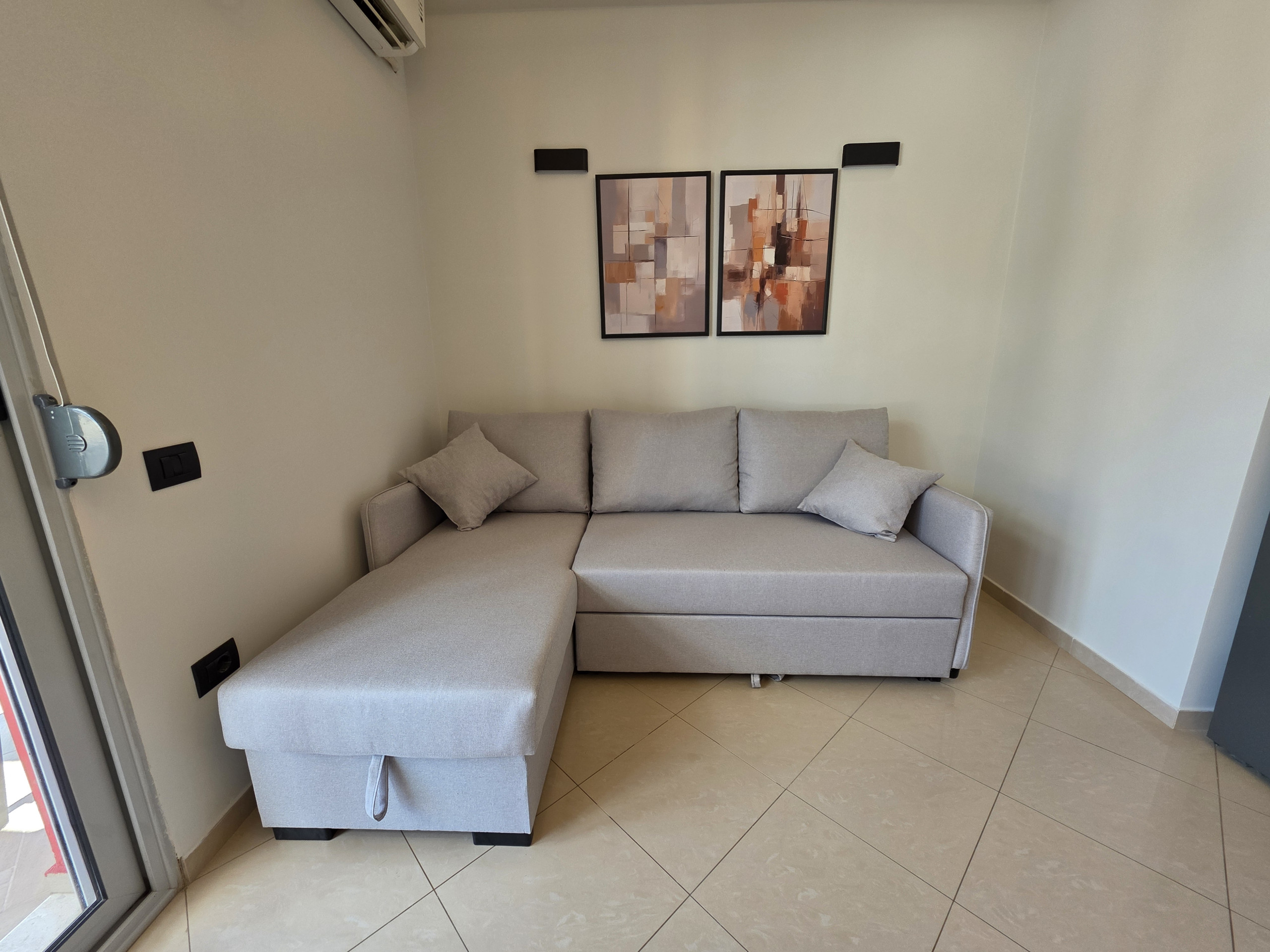 This welcoming one-bedroom apartment comfortably accommodates up to 5 guests, featuring a versatile sleeping arrangement with a double bed, a double sofa bed, and an individual bed. The space is ideal for those wanting a flexible and comfortable stay.