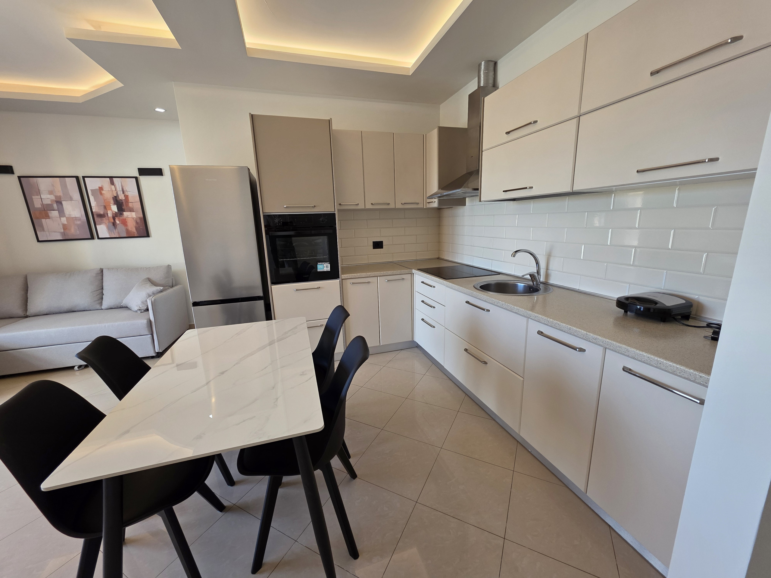 Just 500 meters from a beautiful sandy beach and close to various attractions like Dodo Restaurant and Regina Garden, this apartment provides an excellent base for exploring Vlorë. Nearby highlights include the Llogara National Park and convenient access to local thermal springs.